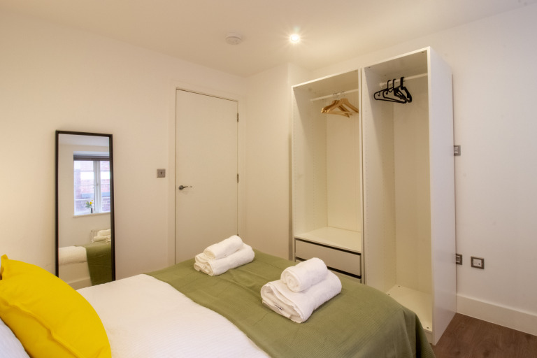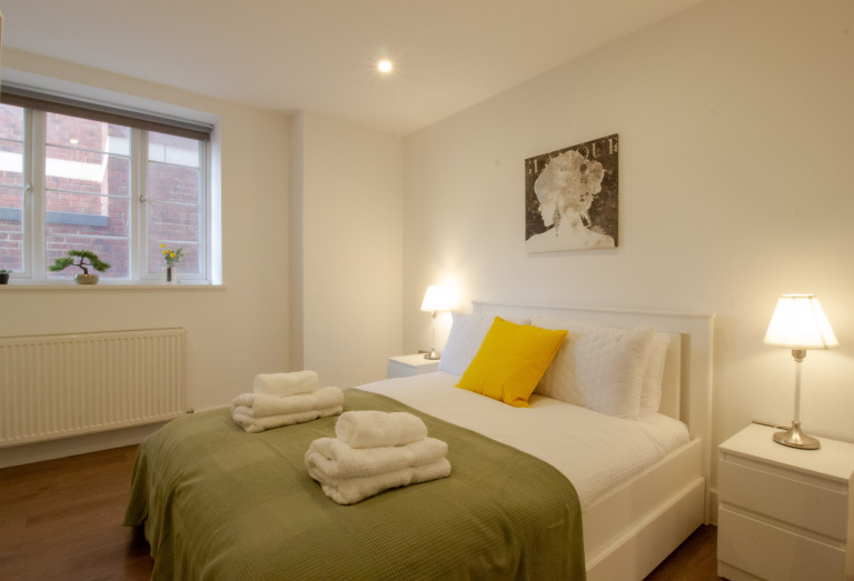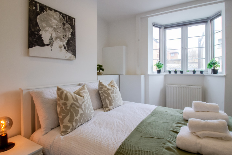 The flat is in a secure building and less than one minute walking from Nine Elms station. This unit has a lounge/ kitchen area, 2 full sized double bedrooms, and a large bathroom. So pleanty of space for your family and friends to rest while enjoying London!