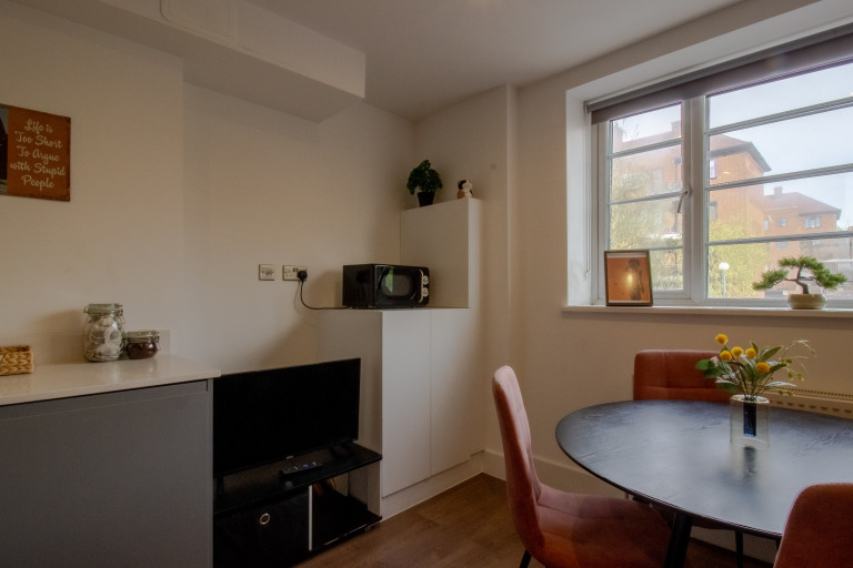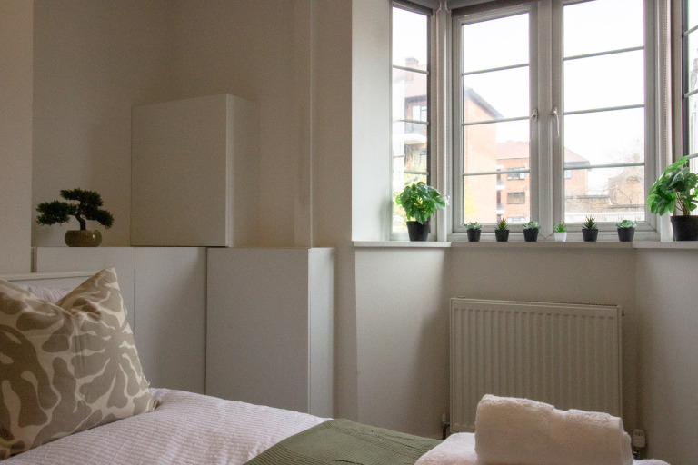 Spacious and very comfortable flat with all utilities, two full sized double bedrooms, one large bathroom, a nice living room/ kitchen area.