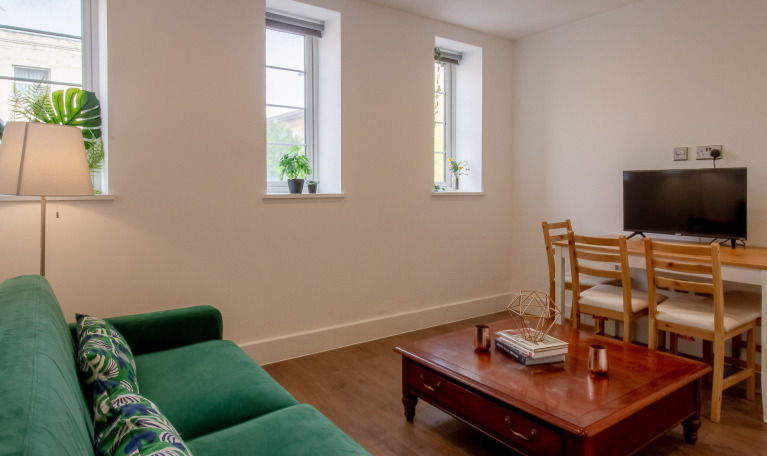 This unit has a separate kitchen, 2 full sized double bedrooms, and a fully equipped living space, with so pleanty of space for your family and friends to rest while enjoying London!